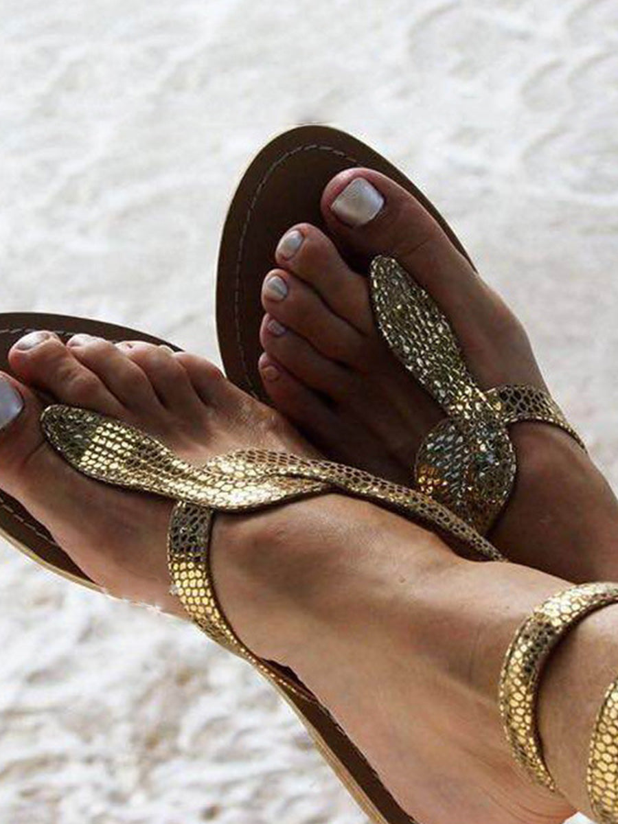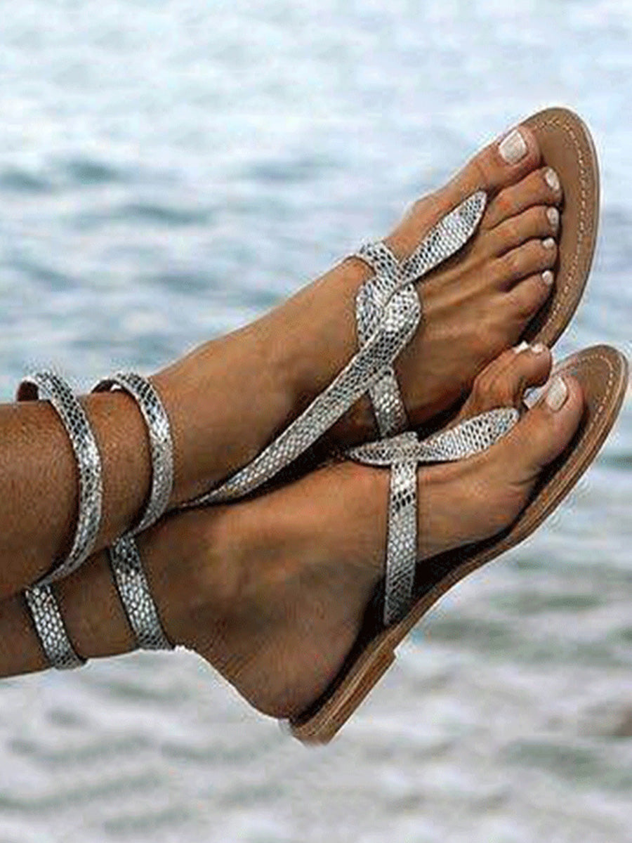 Animal Printed Flat Ankle Strap Peep Toe Casual Gladiator Sandals