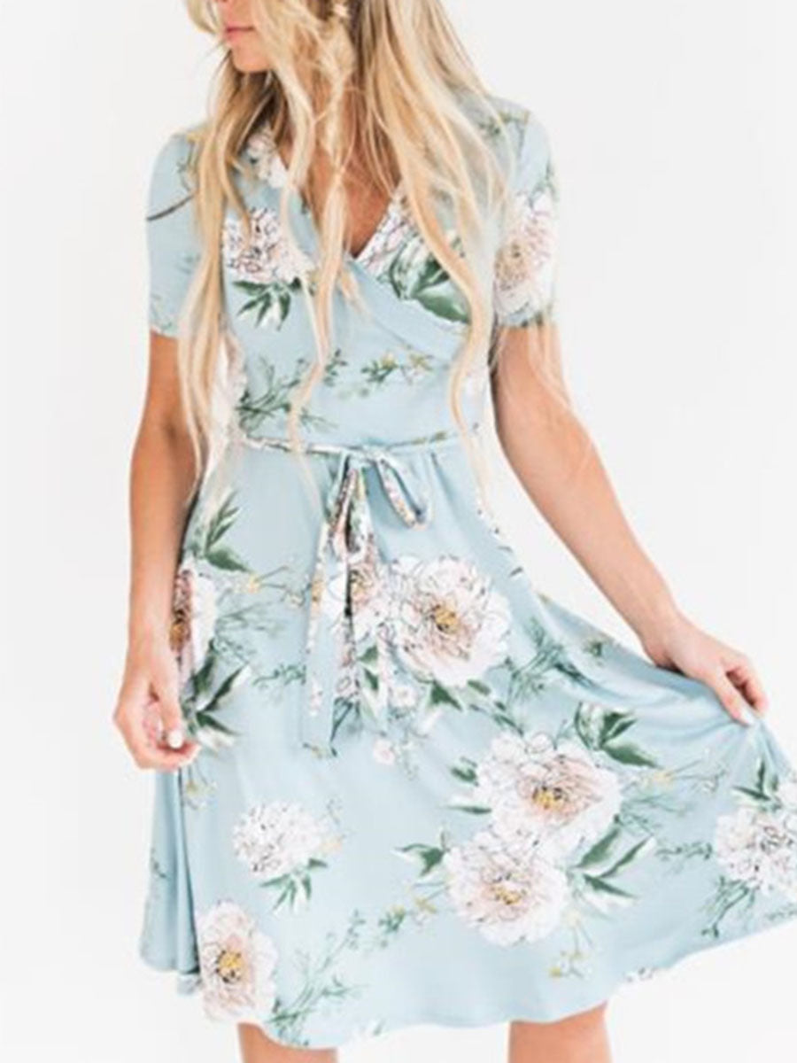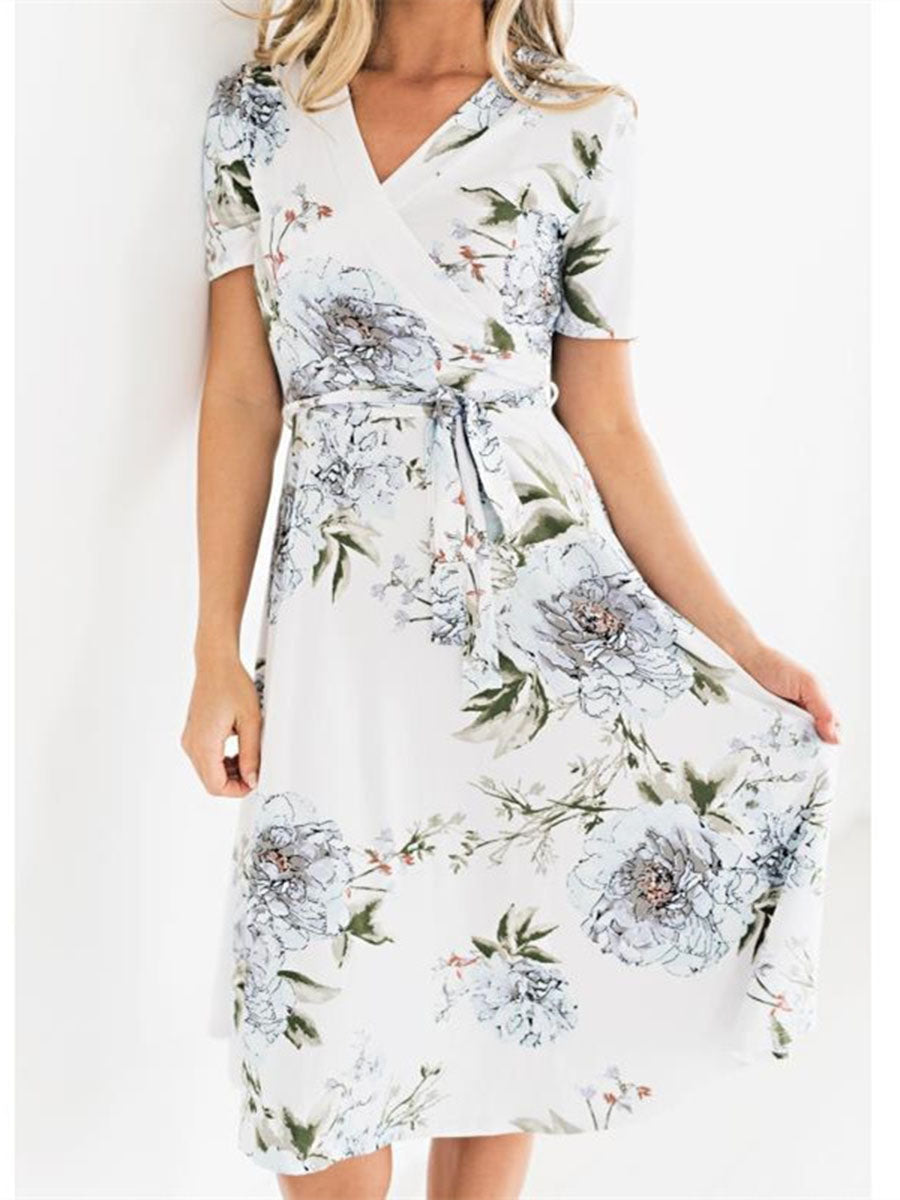 Cross V-Neck Floral Dress