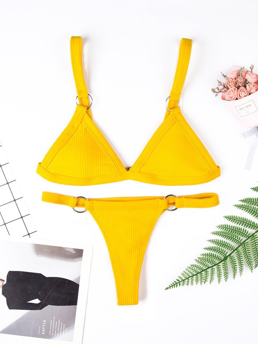 Vacation Sandbeach Sexy Pure Color Bikini Set |