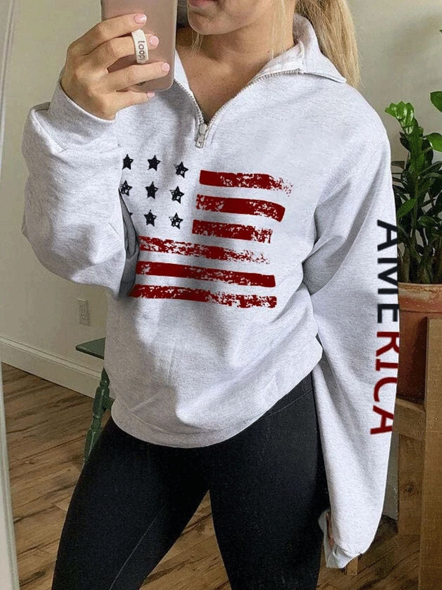 American Flag Print Zip Sweatshrit