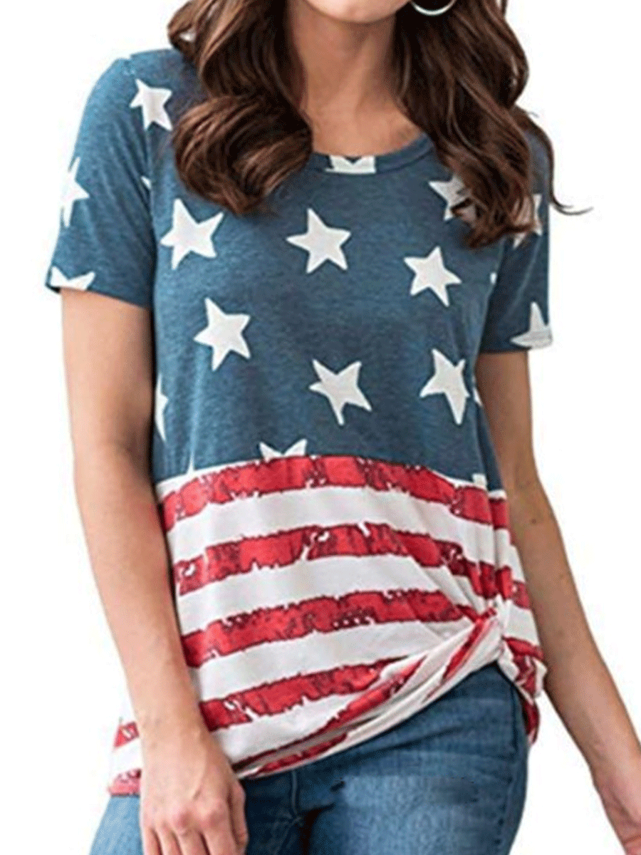 American Flag Star Stripes Knotted Top