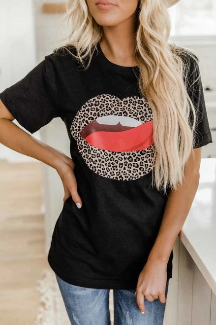 Animal Print Lips Black Heather Graphic Tee T Shirt