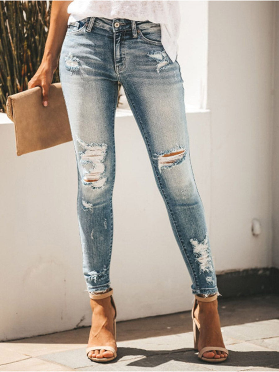 Casual Style Hollow Out Jeans