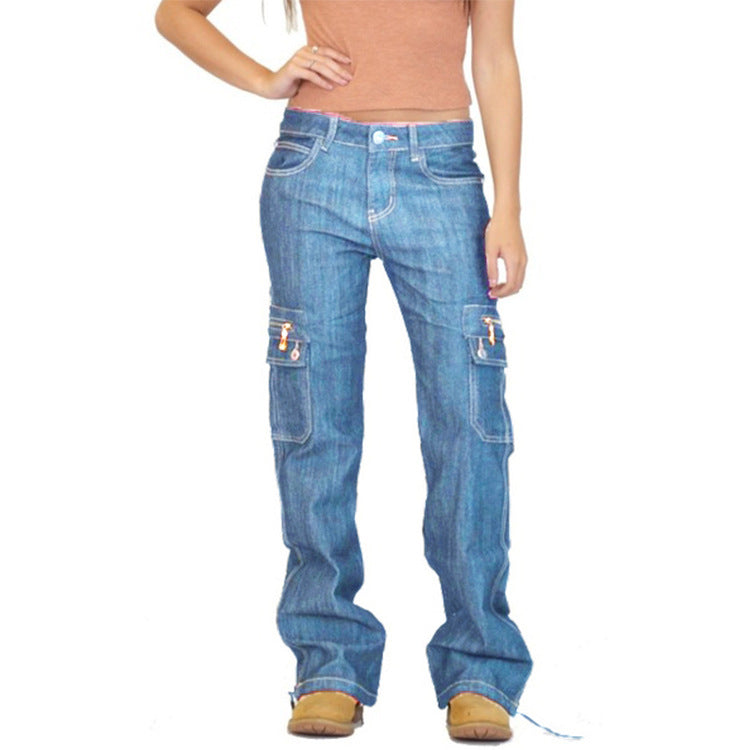 Casual Zipper Pocket Jeans