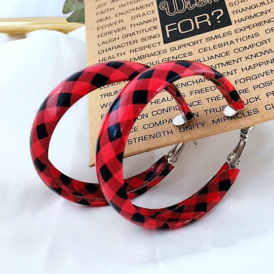 Women's Plaid Round Leather Earrings