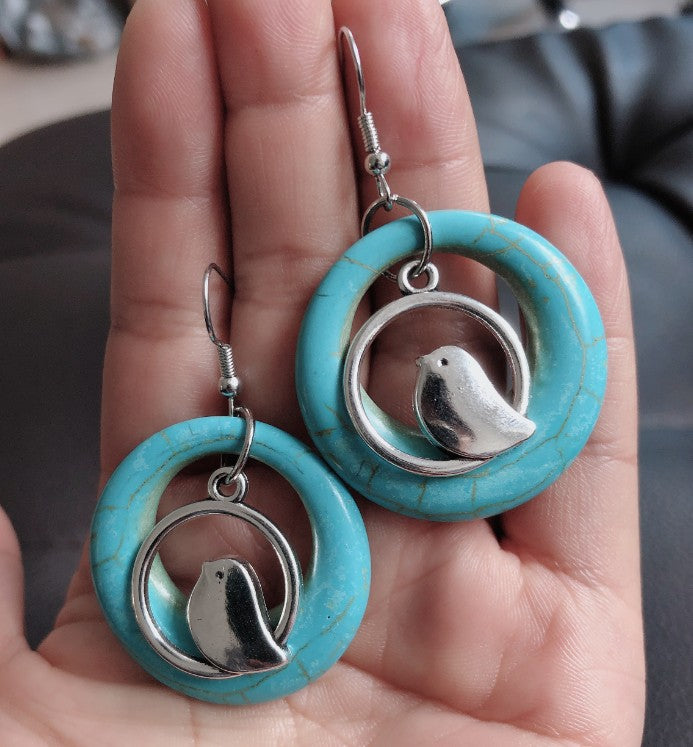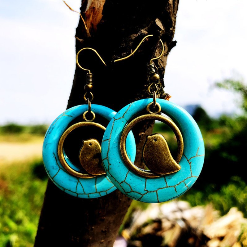 Vintage Bird Nest Turquoise Earrings