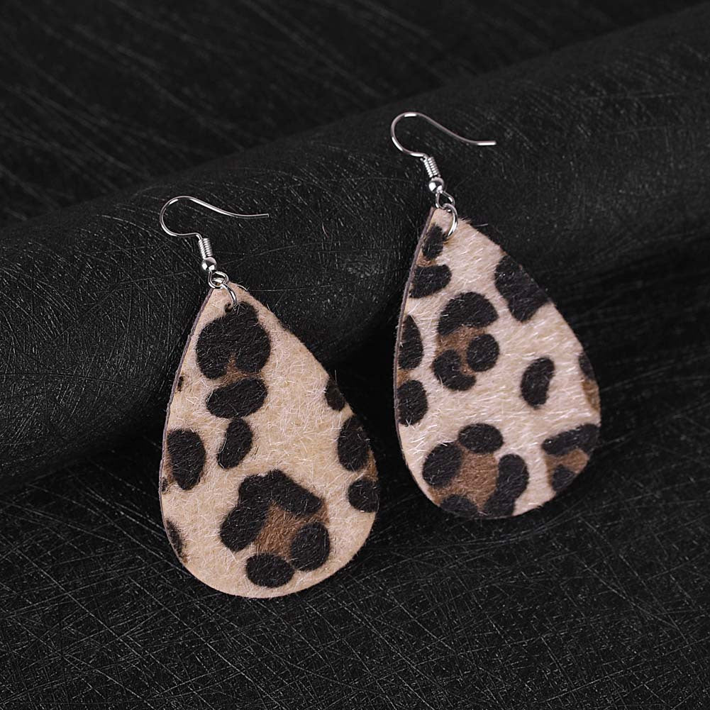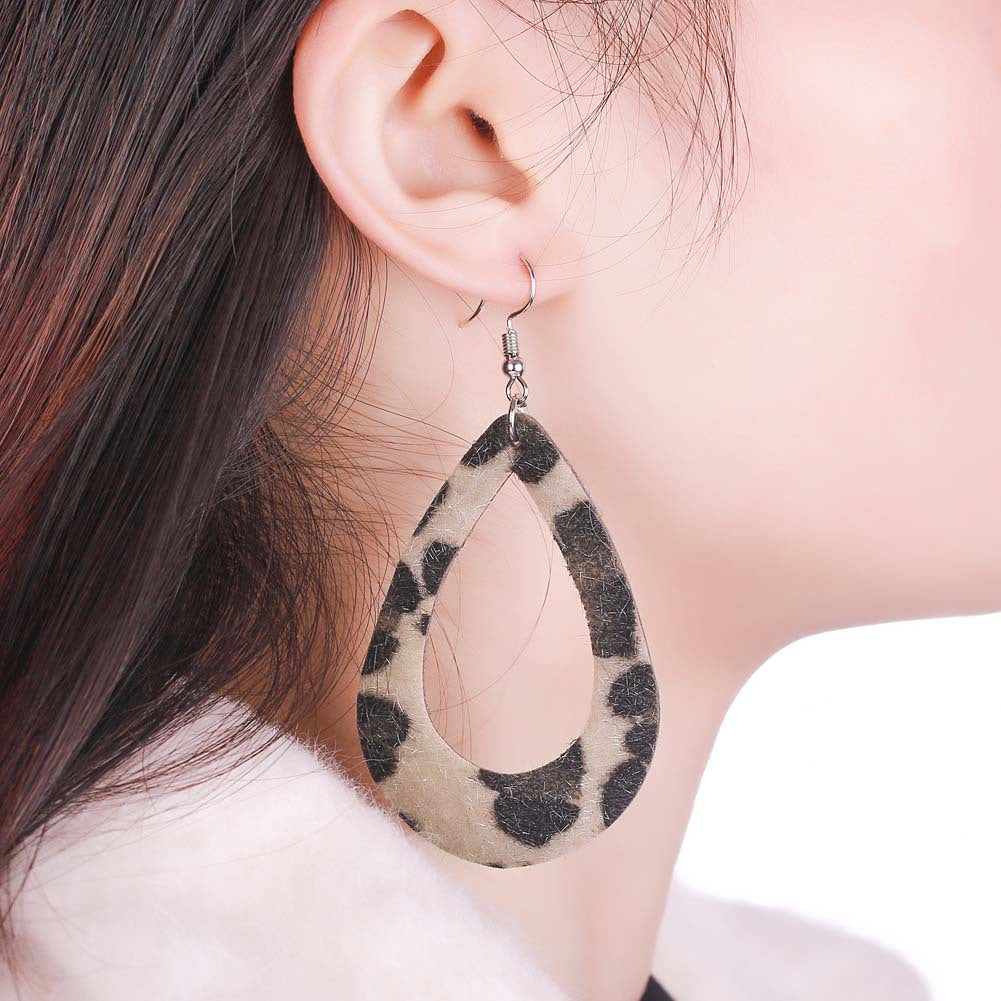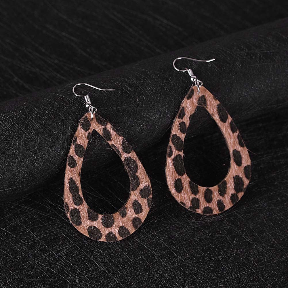 Leopard Drop Tear PU Leather Earrings