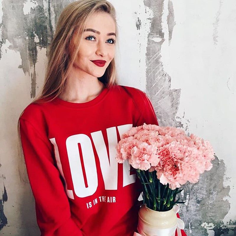Valentine's Day Love Printed Round Neck Long Sleeves Sweatshirt