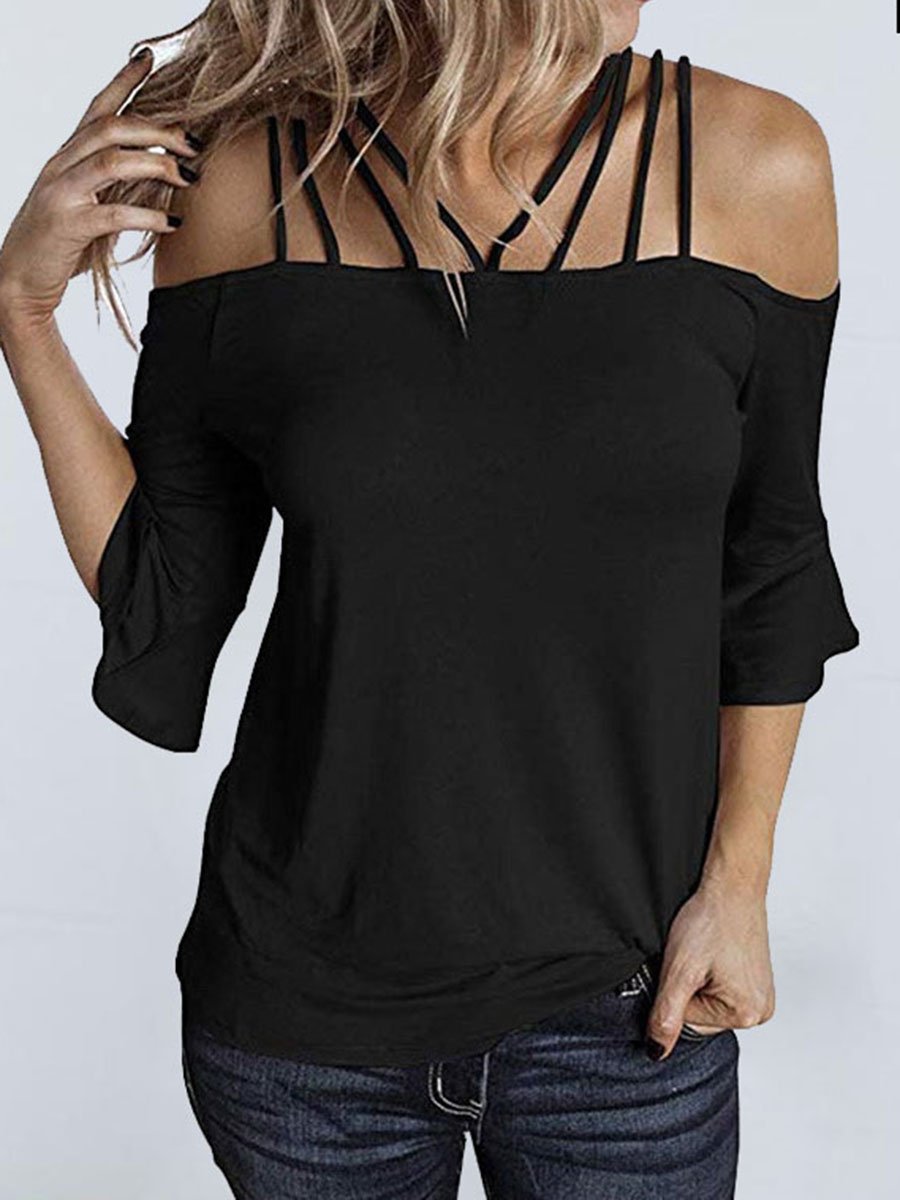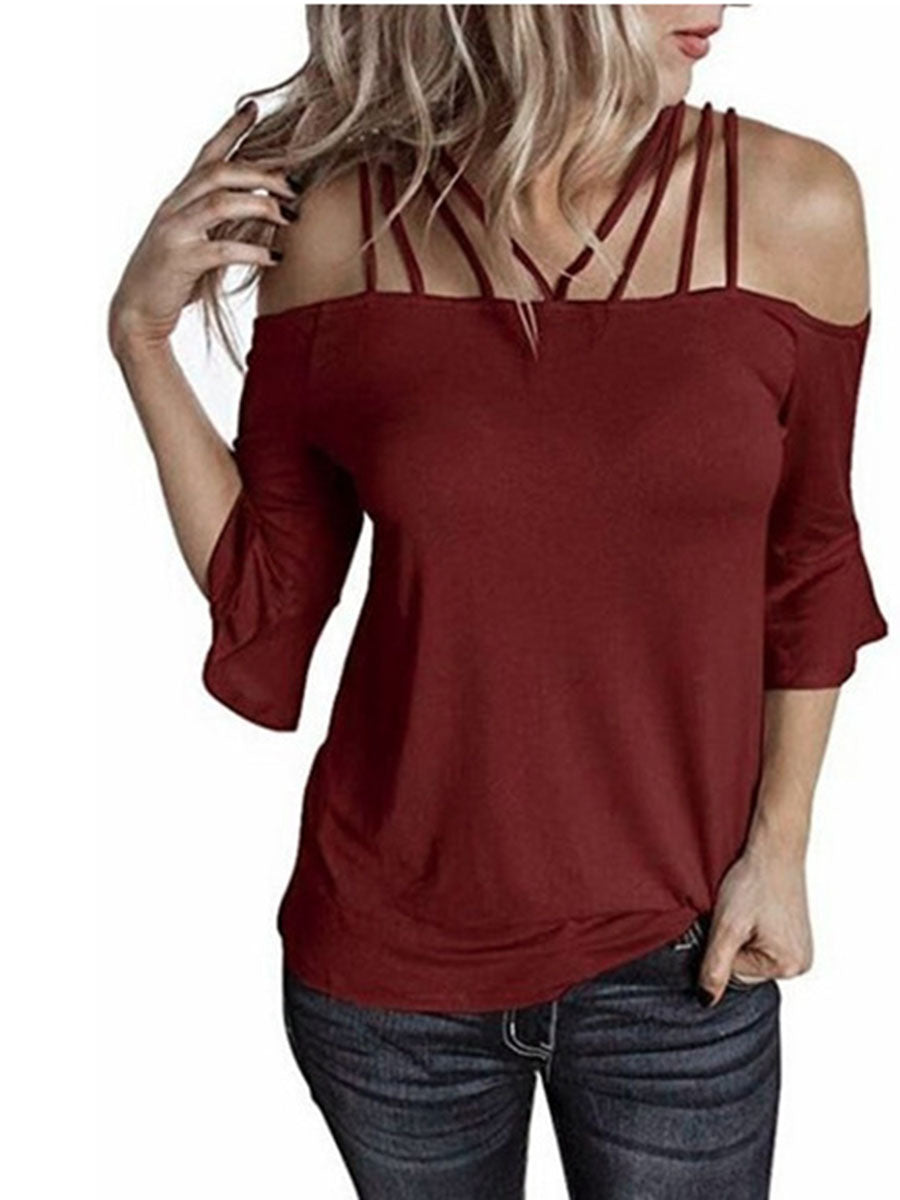 Off Shoulder Solid Color T-shirt