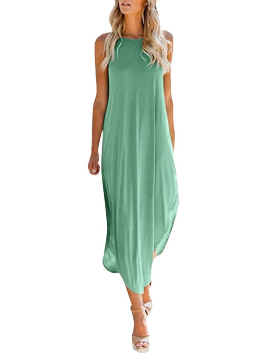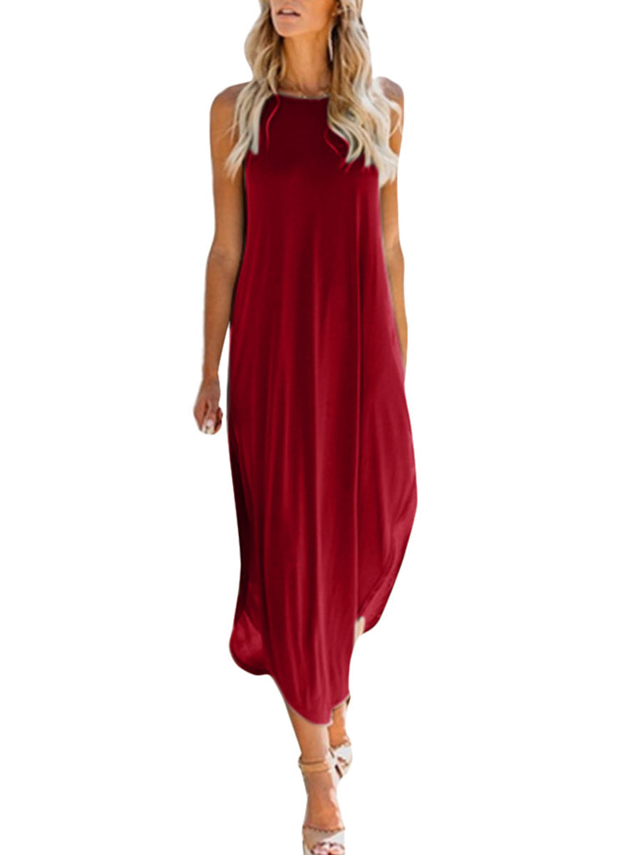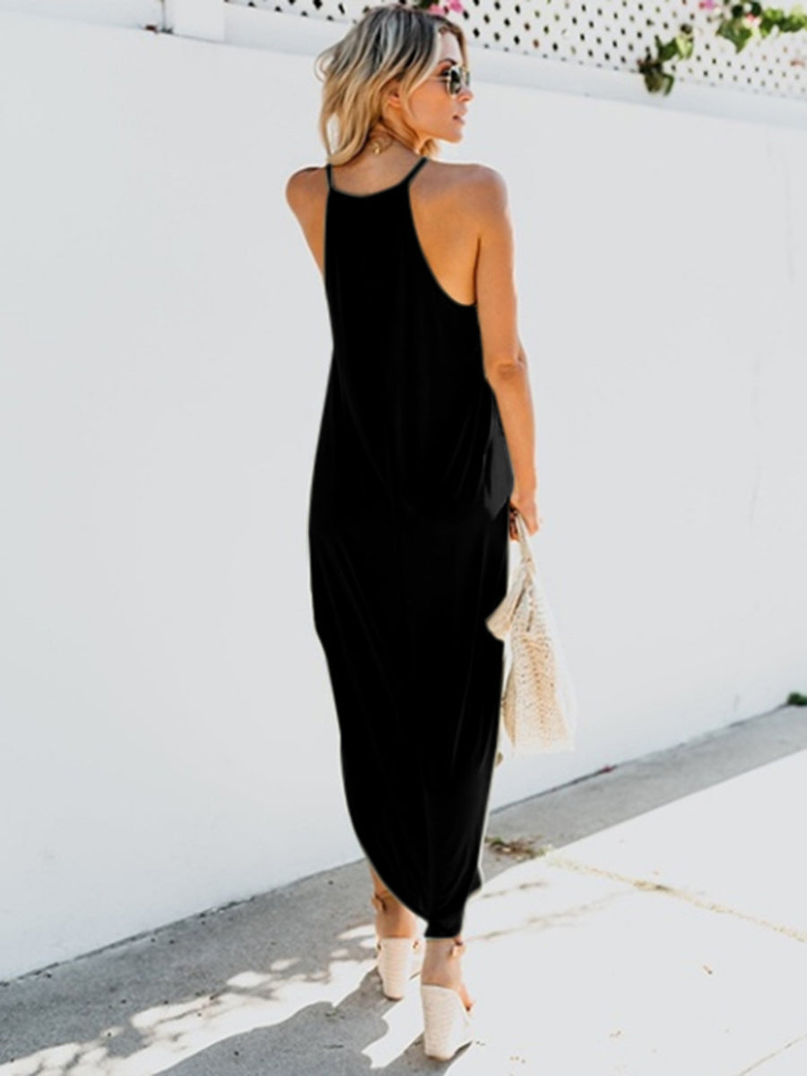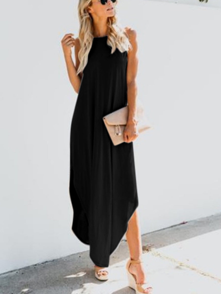 Solid Color Sleeveless Irregular Hem Maxi Dress