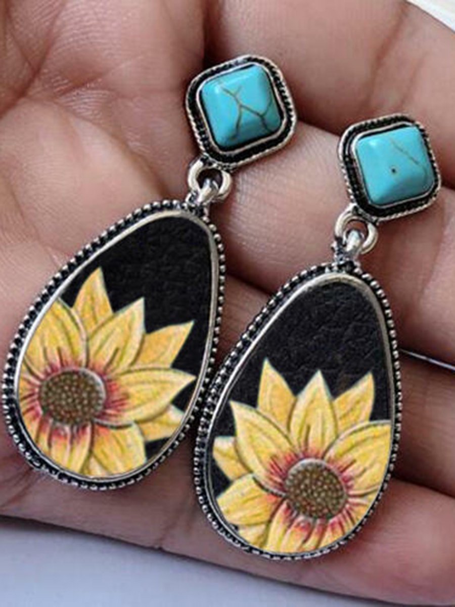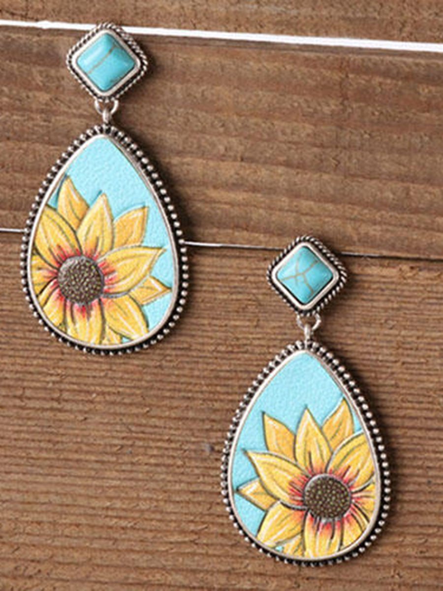 Sunflower Turquoise Water Drop Shaped Earrings
