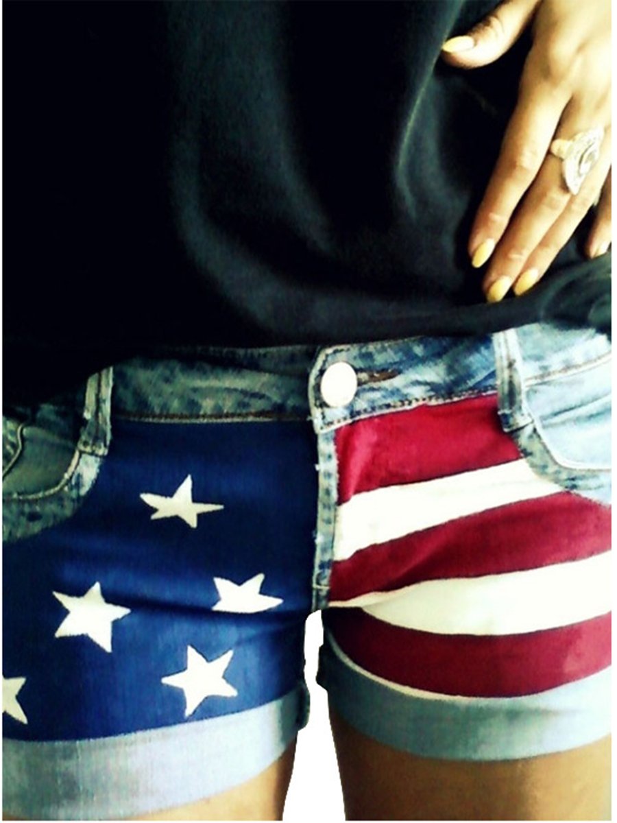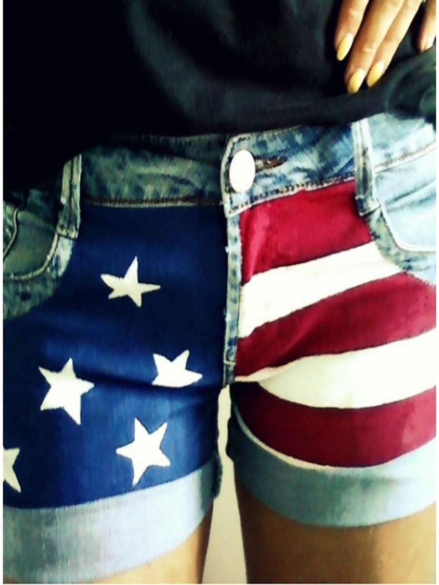 America Flag Stars and Stripe Denim Shorts