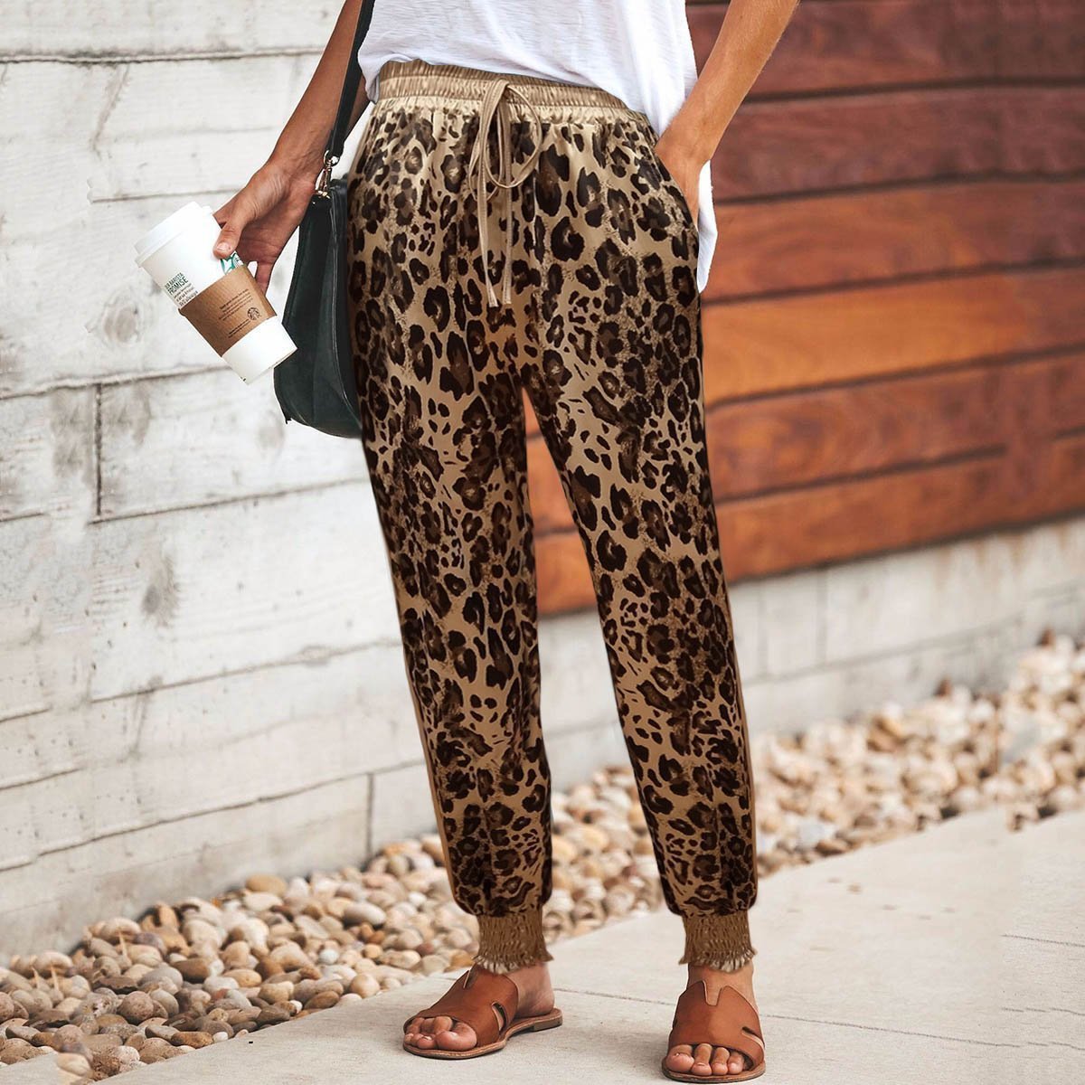 Casual Leopard Print Elastic Drawstring Waist Sport Pants