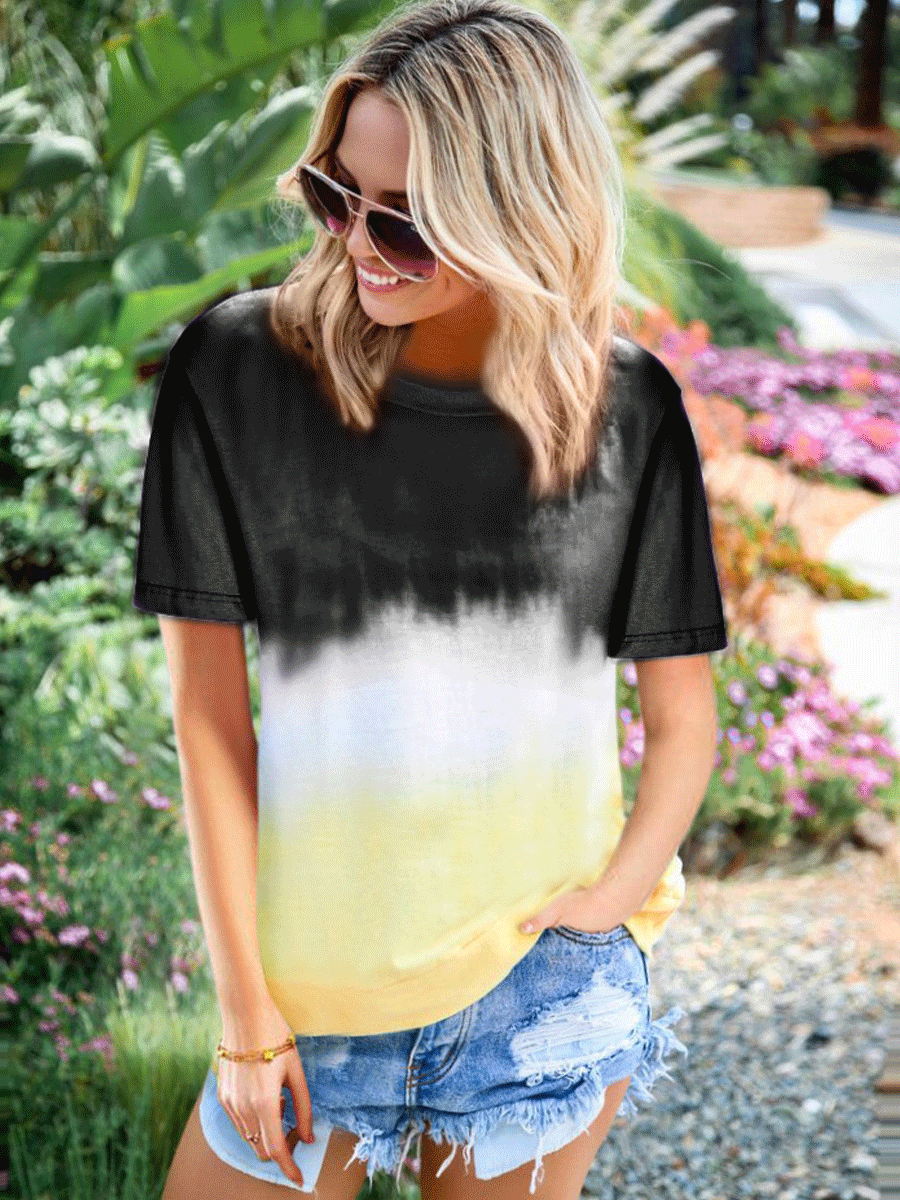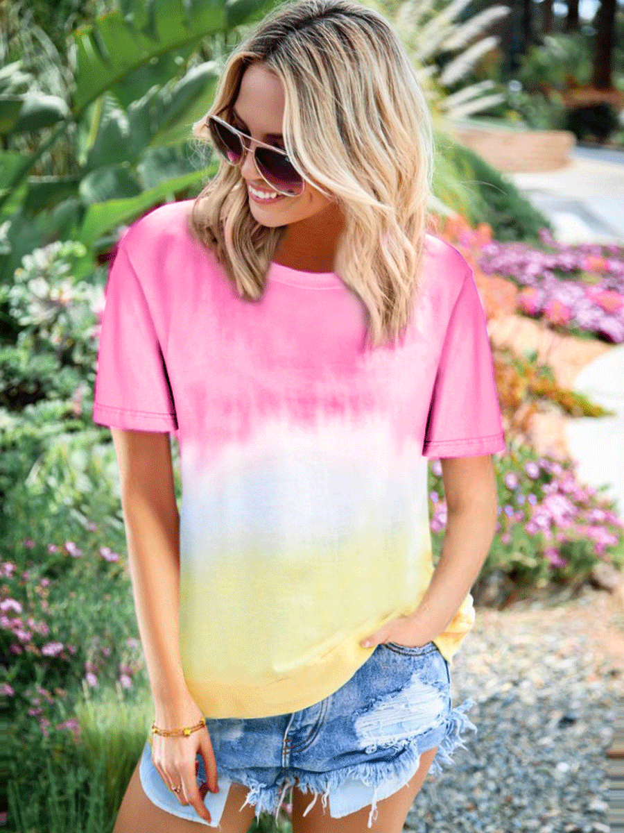 Rainbow Gradient Printed Short-sleeved T-shirt