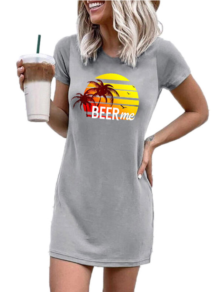 Round Neck Letters Printed Mini Dress