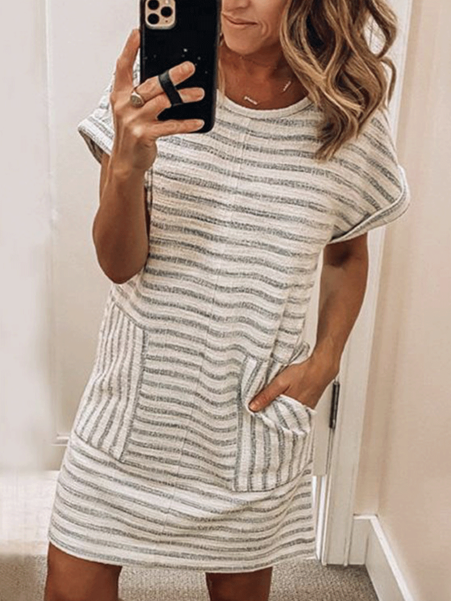 Round Neck Stripe Stitching Dress