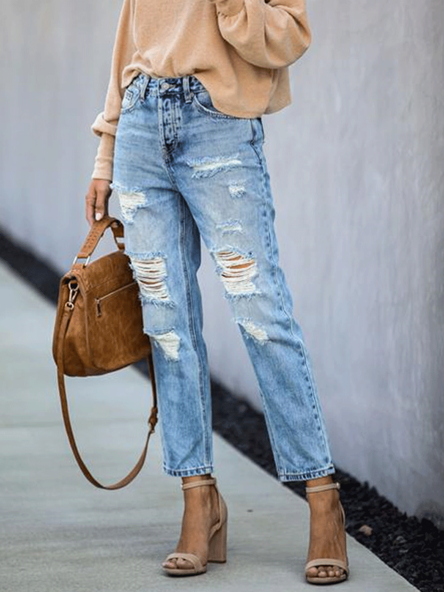 Shredded Denim Straight-leg Pants