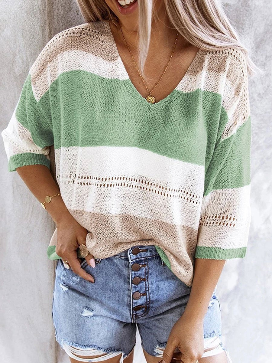 Striped Colorblock Cutout Sweater