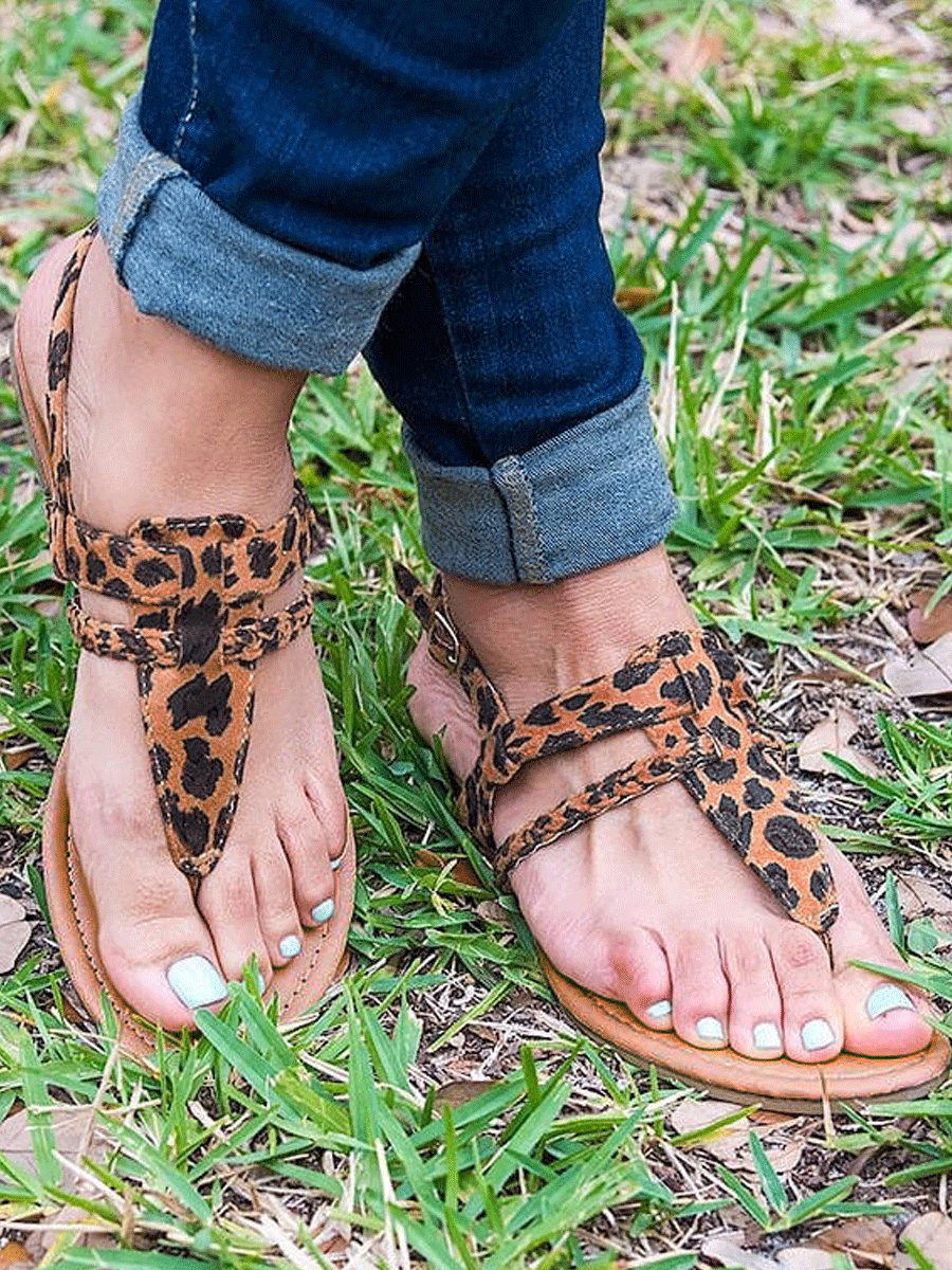 Summer Leopard Buckle Strap Flat Sandals