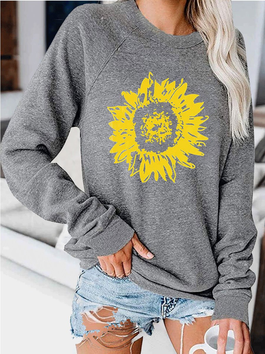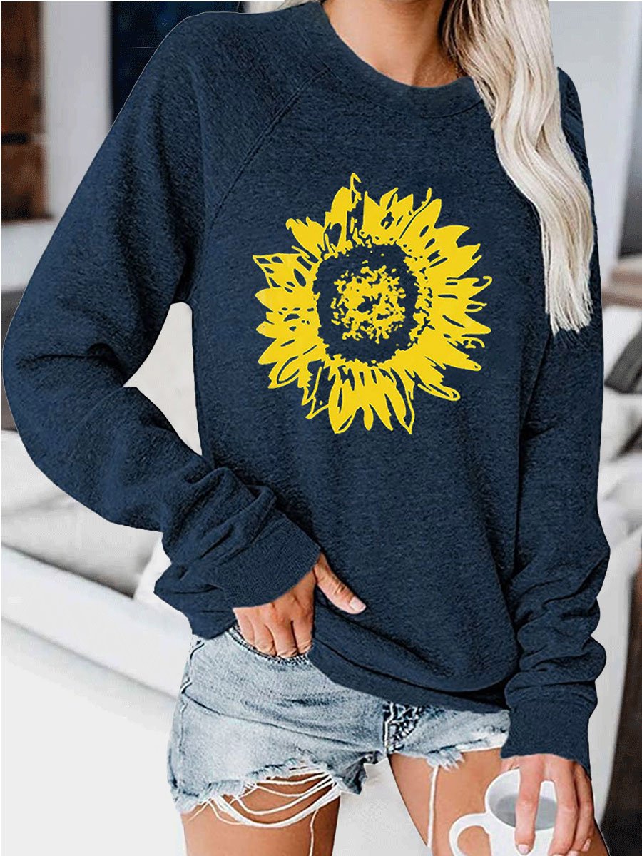 Sunflower print crew neck sweatshirt