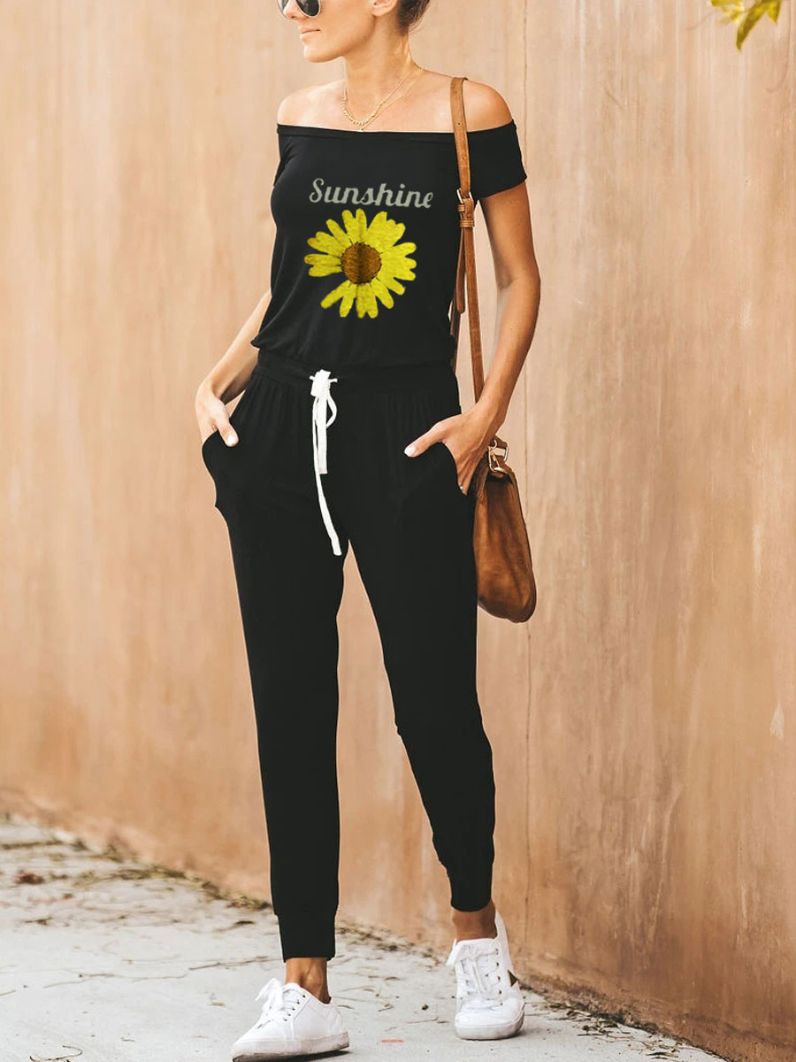 Sunshine Sunflower Off Shoulder Drawstring Waist Jumpsuit