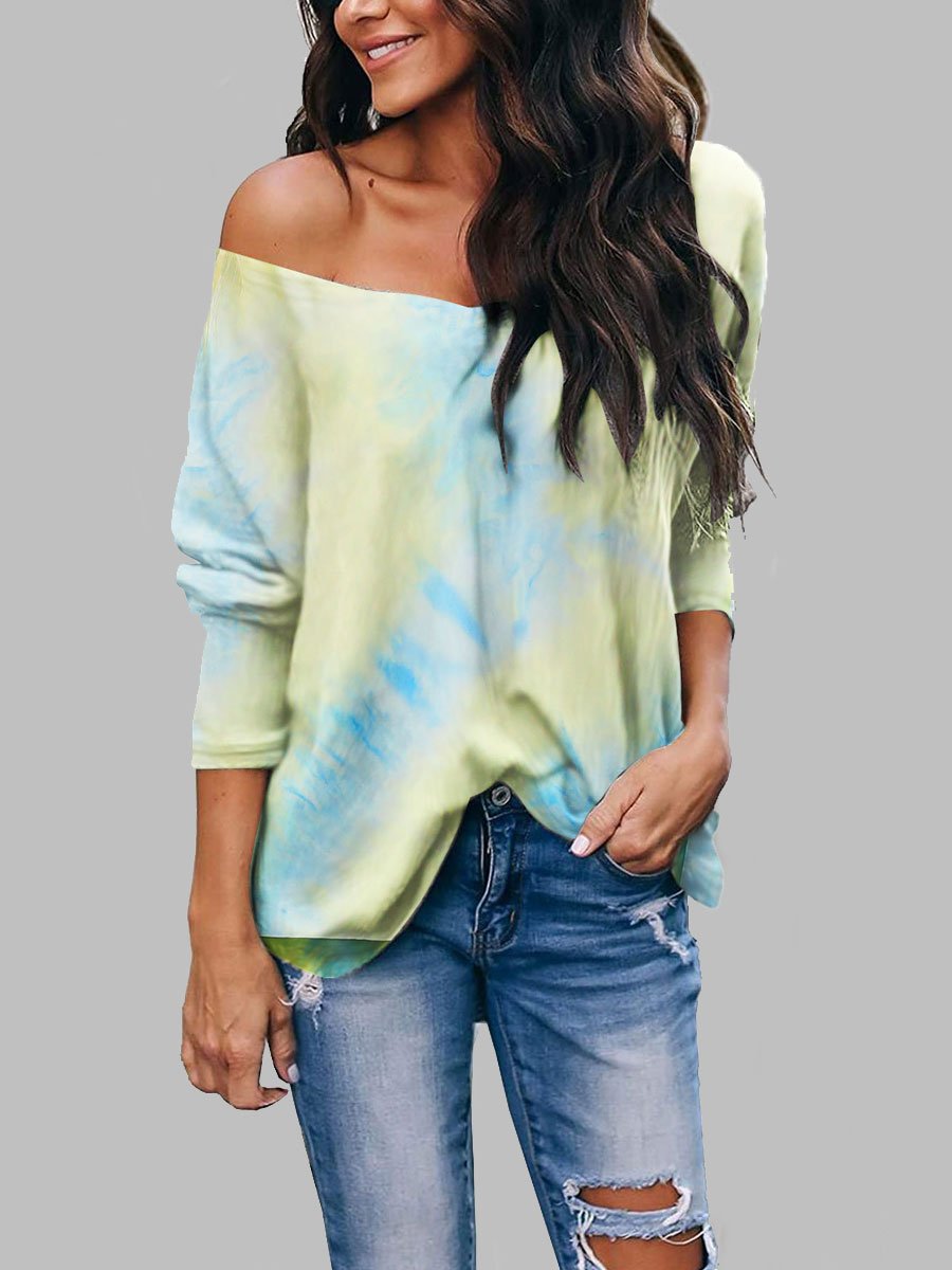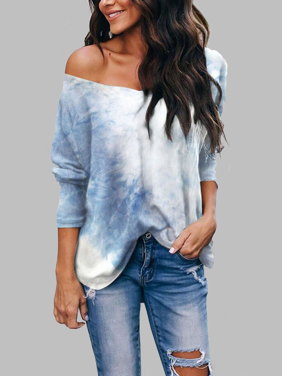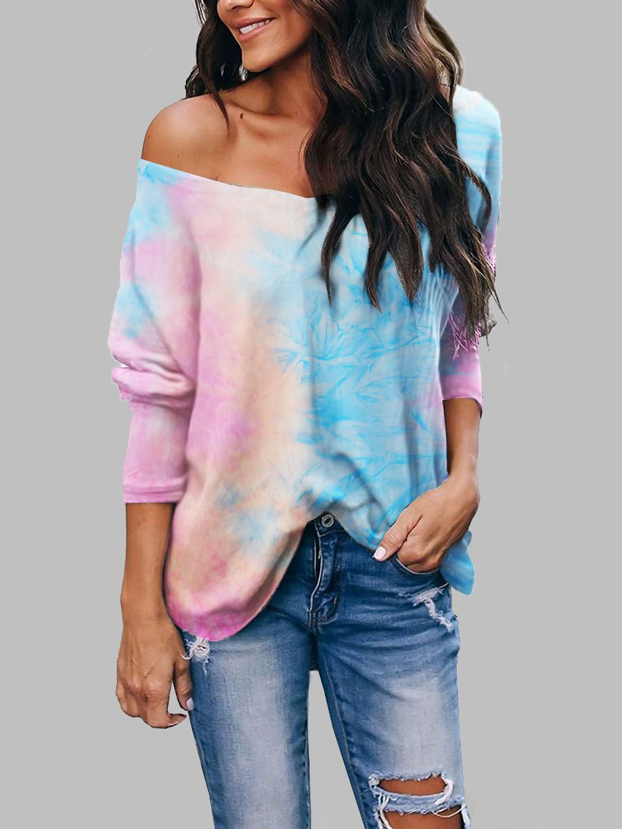 Tie-dye Long-sleeved V-neck Loose T-shirt