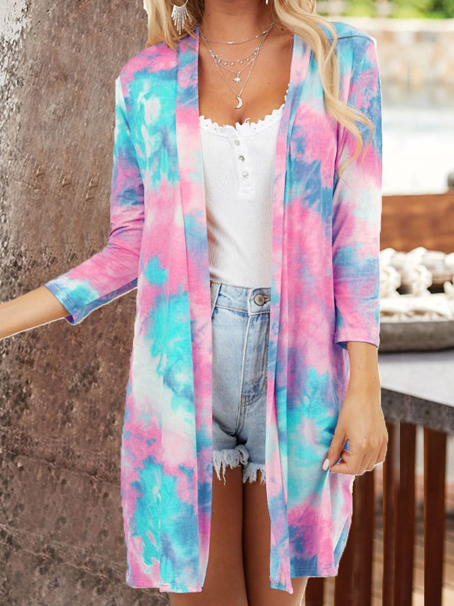 Tie-dye Printed Loose Long Sleeve Cardigan