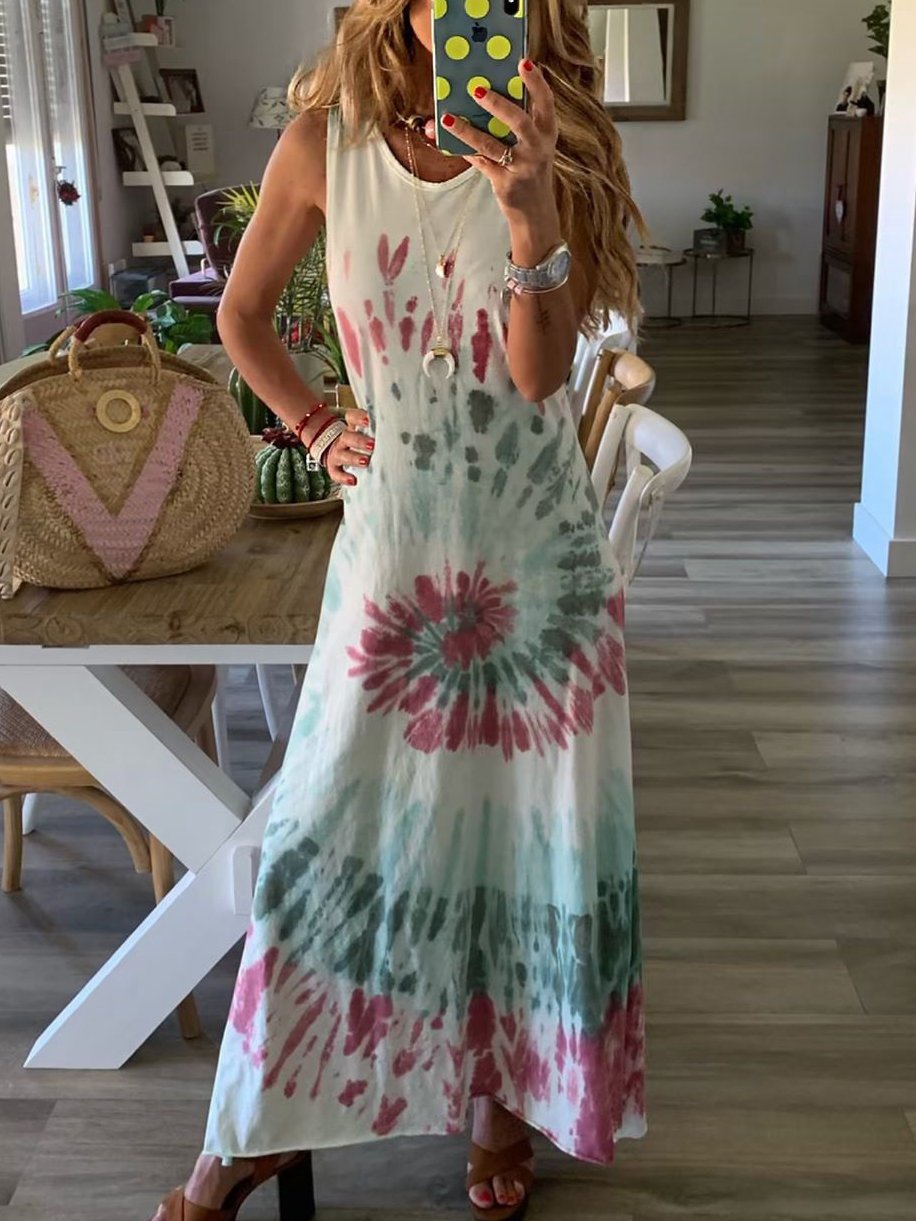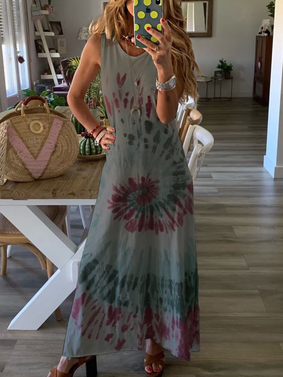 Tie-dye Printed Sleeveless Dress