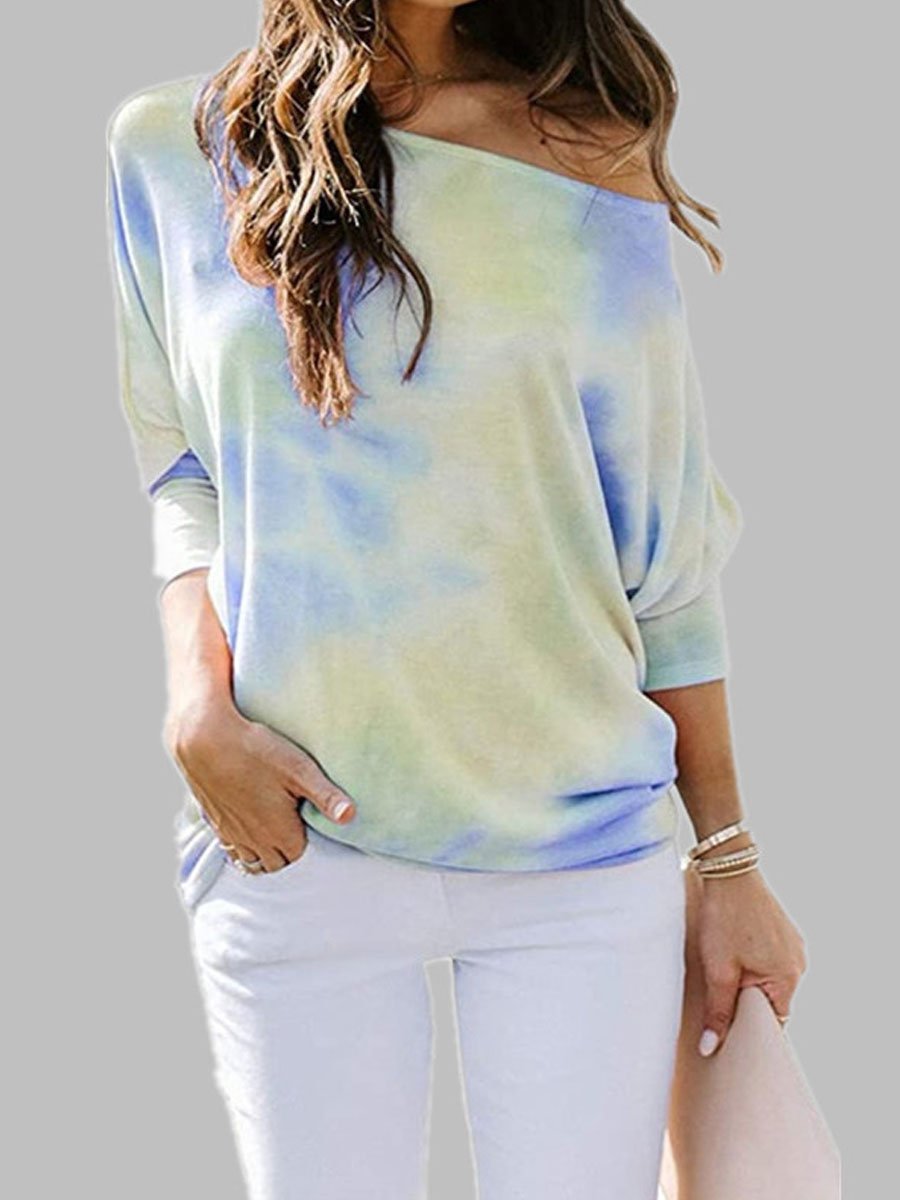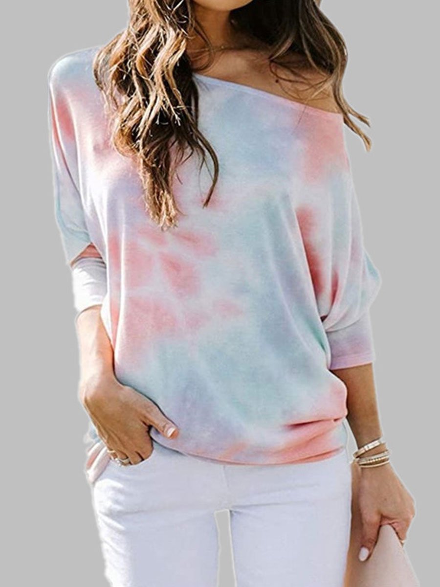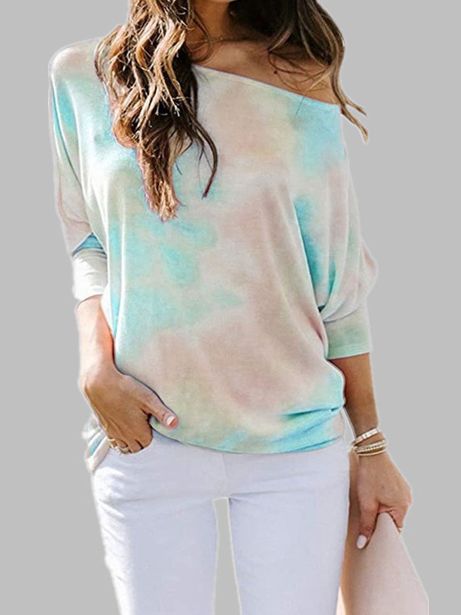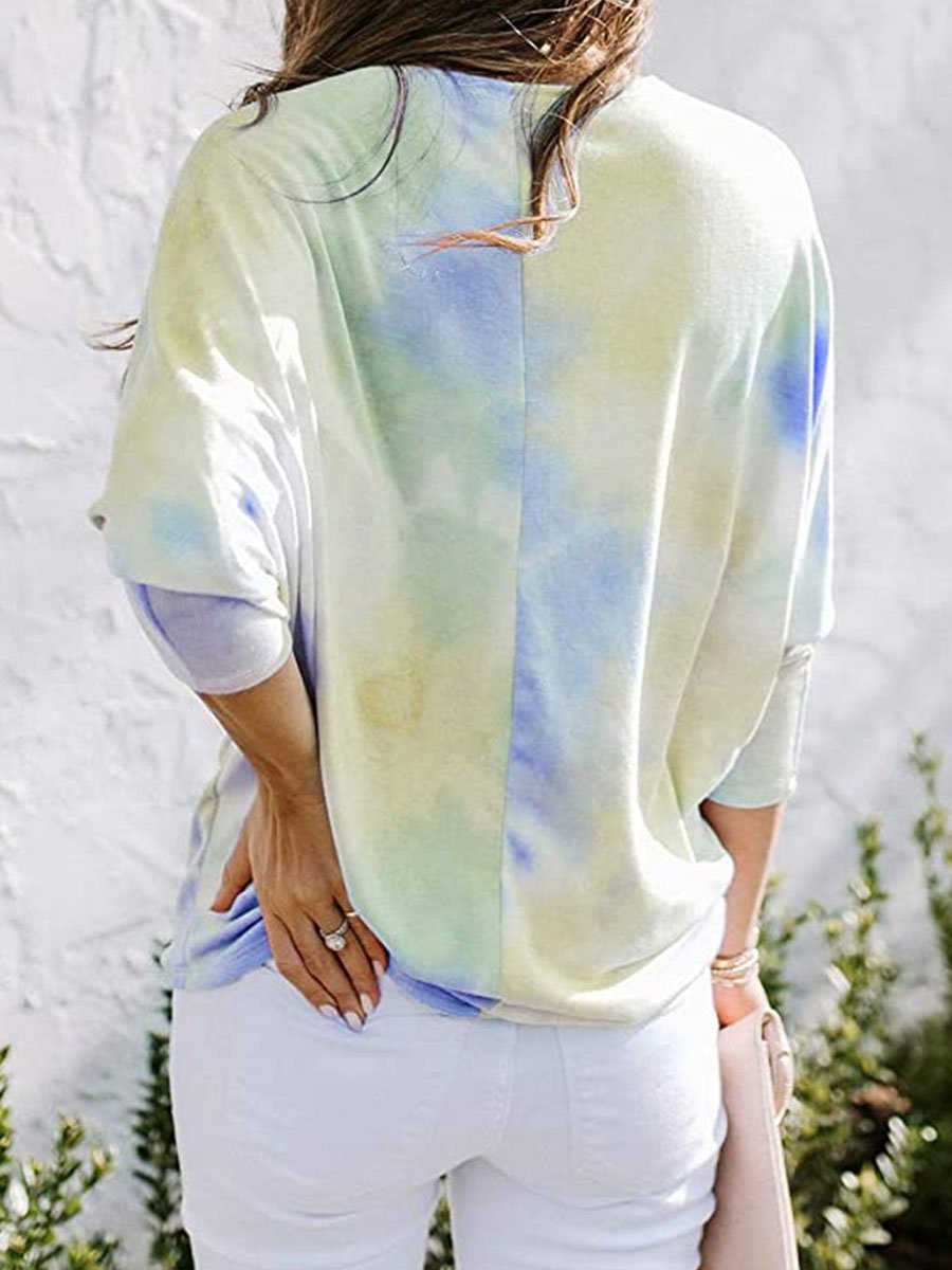 Tie-dyed Round Neck Loose Casual Long-sleeved T-shirt