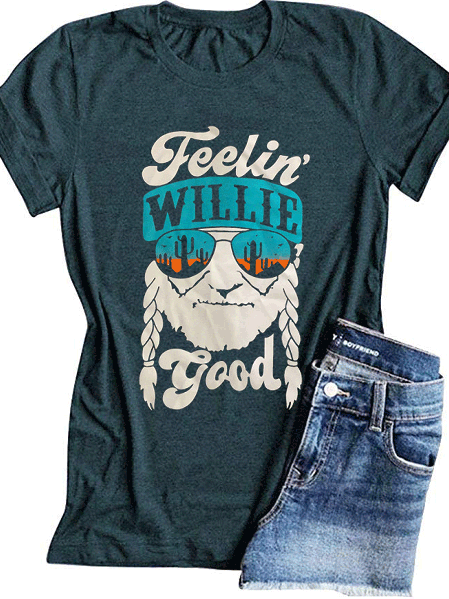 Tricolor Old Man Head Letter Printing T-shirt