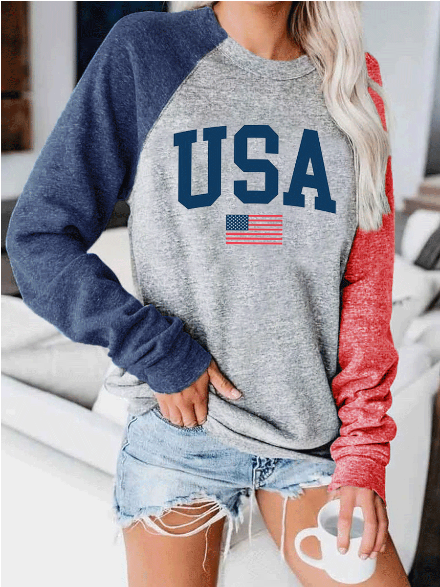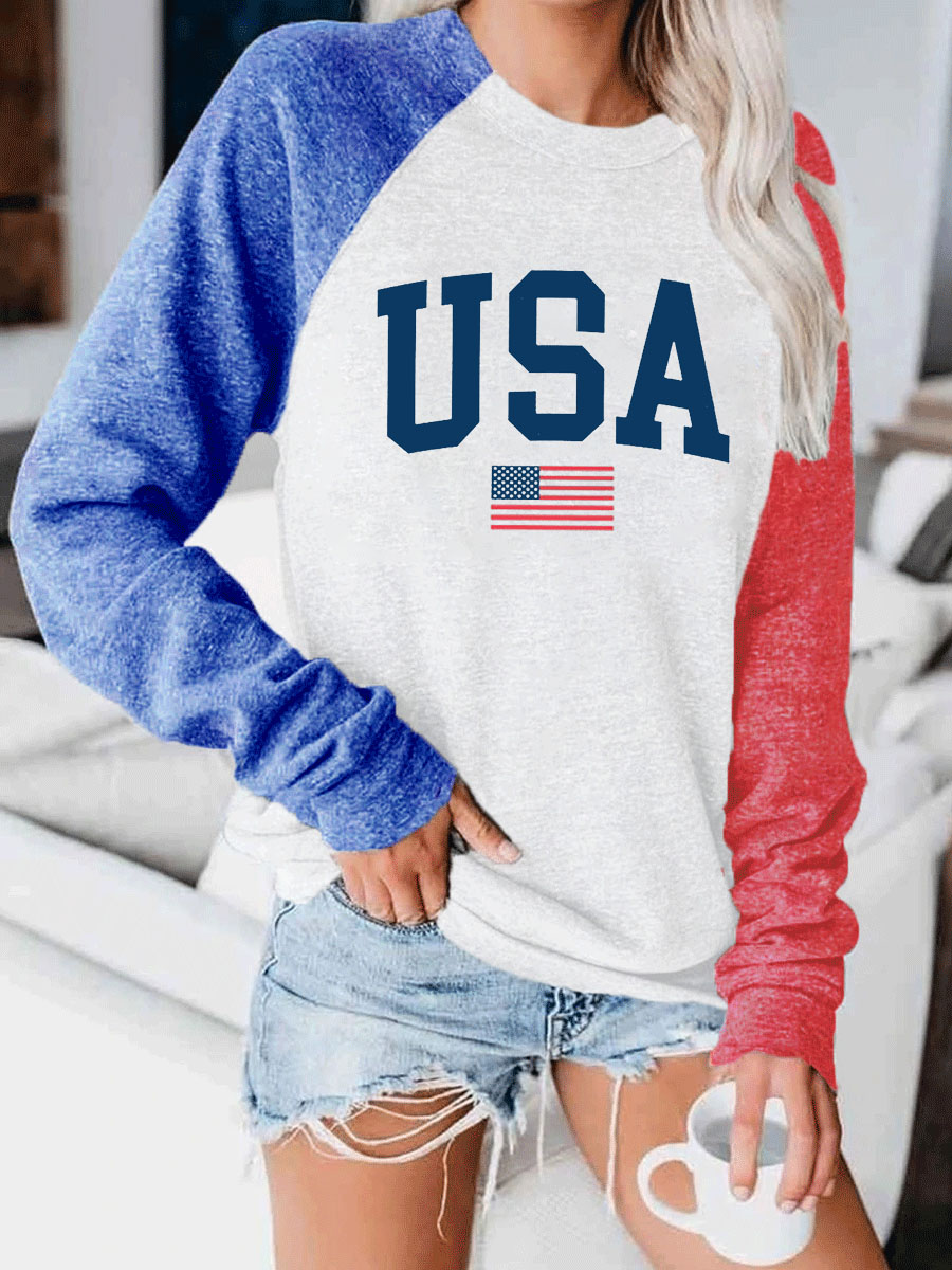 USA Flag Colorblock Sweatshirt