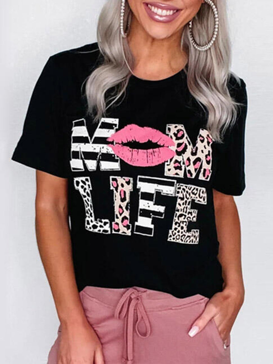 MOM LIFE LIPS Leopard T Shirt