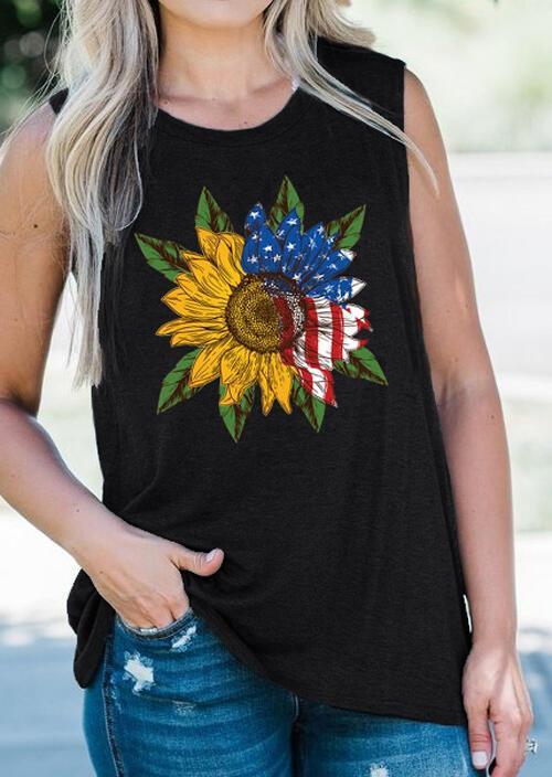 American Flag Sunflower Sleeveless T-shirt