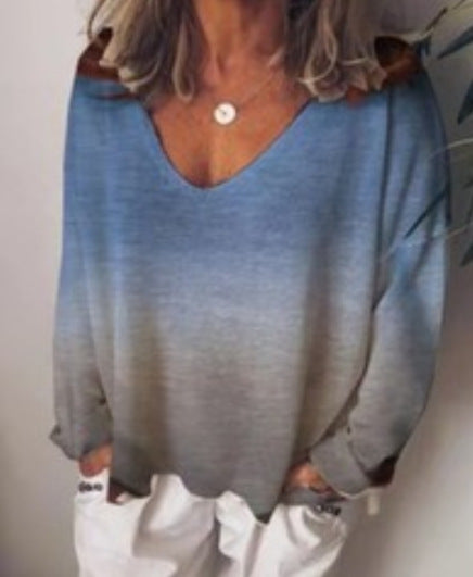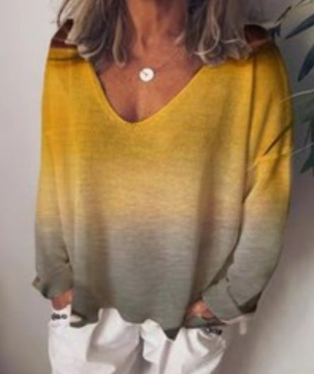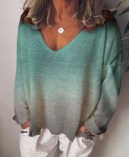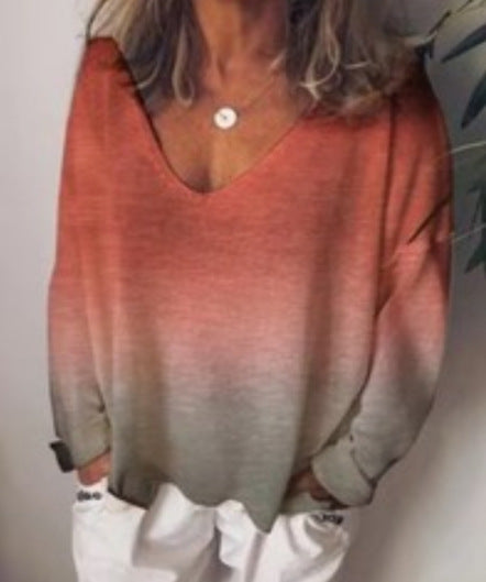 Rainbow gradient printed long sleeve T-shirt