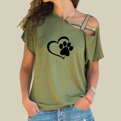 Crossed Irregular Love Footprint T-Shirt