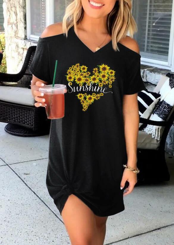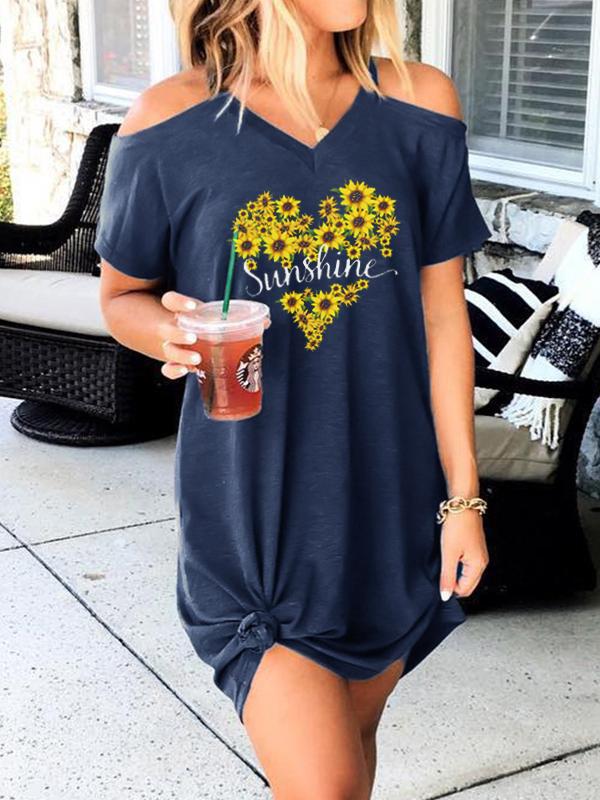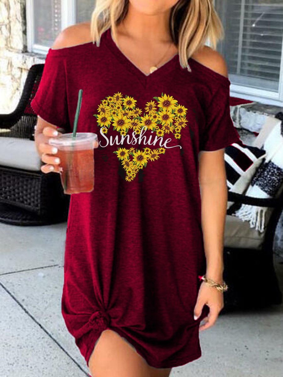 Sunshine Sunflower Off-the-shoulder Short Sleeve Dress