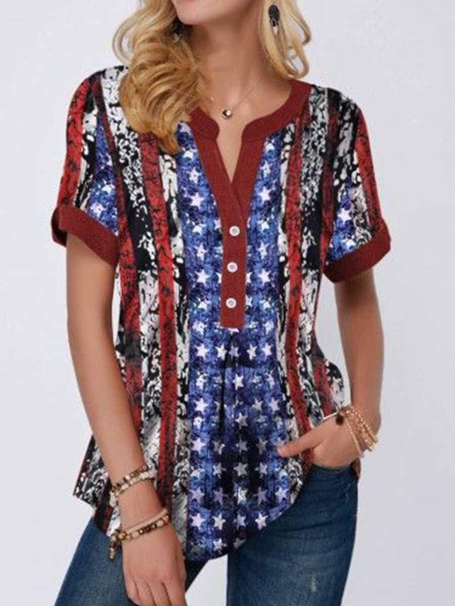 American Flag V Neck Blouse